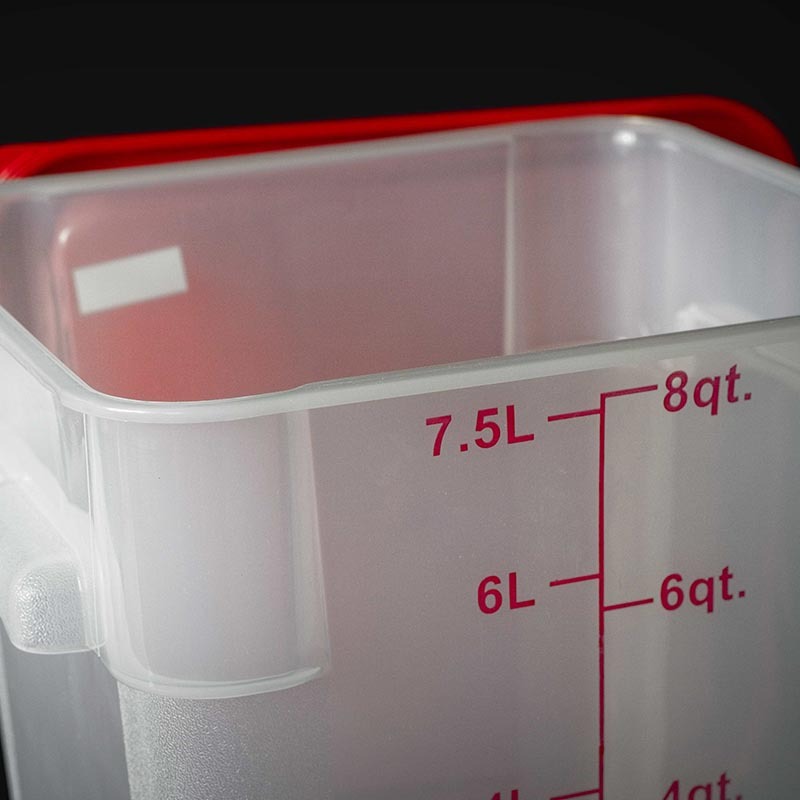 Отметки объема контейнера позволят Вам быстро сориентироваться в необходимом количестве теста/продукта. При необходимости на контейнер можно наносить название продукта и дату.